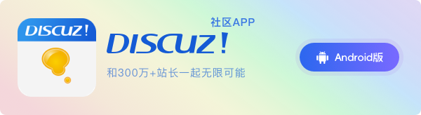 Discuz!? 討論區(qū)SaaS 時(shí)代的全新 Discuz! 版本,兩分鐘搭建一個(gè)社區(qū)的時(shí)代來(lái)了。官網(wǎng)地址:w.discuz.vip |